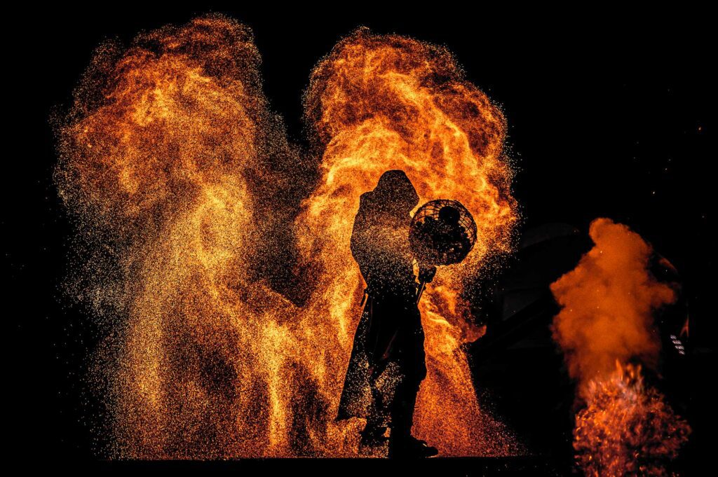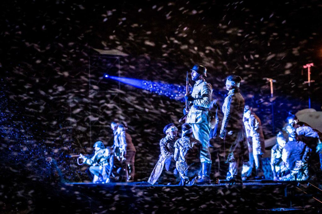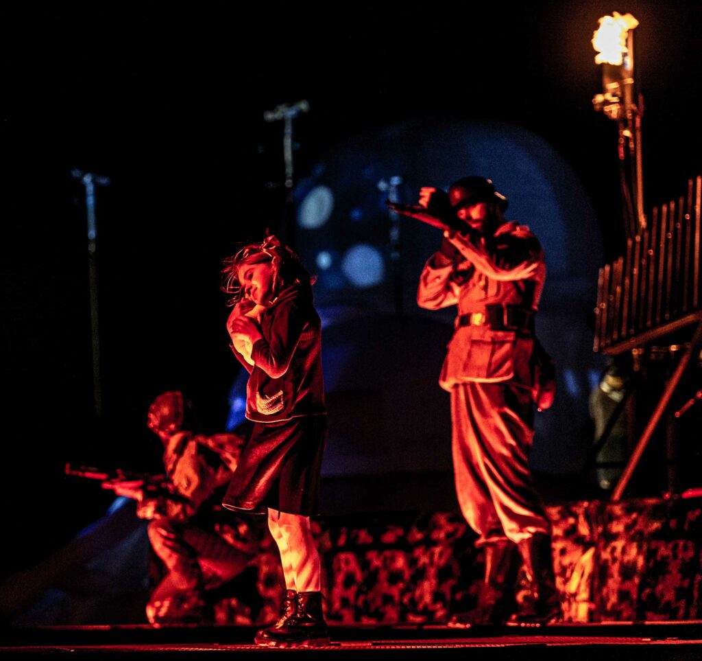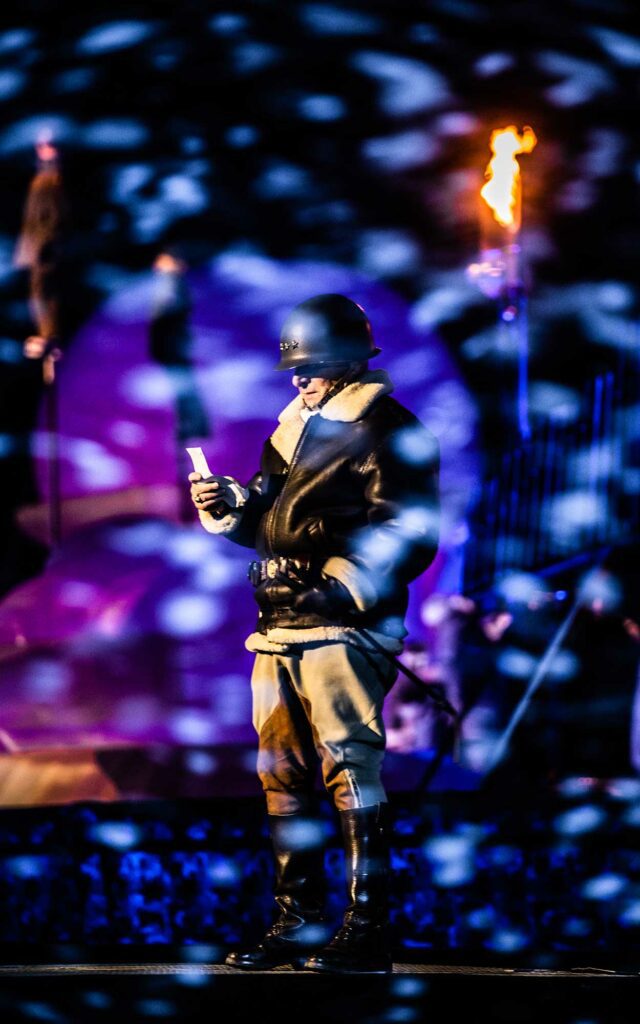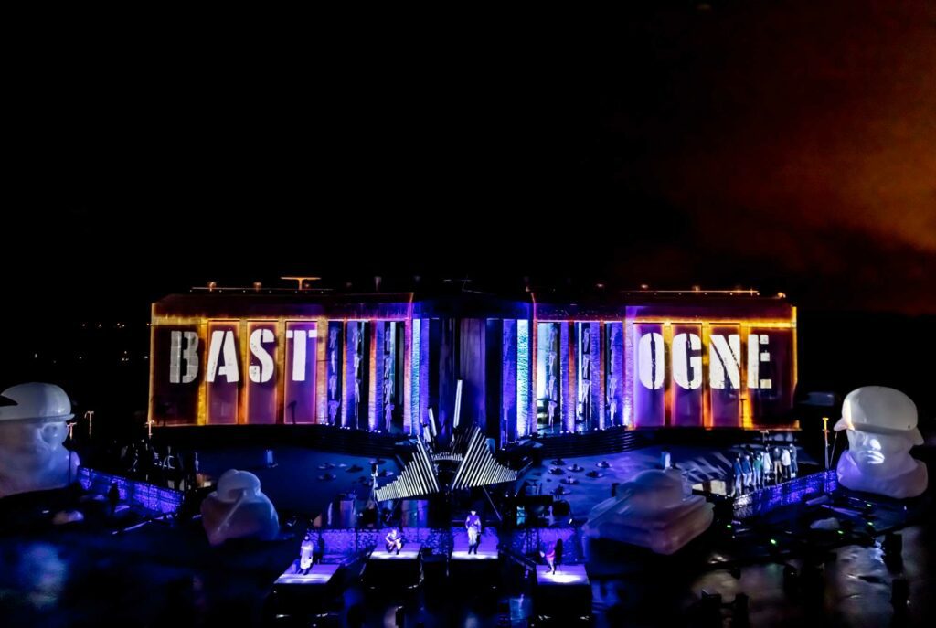 Nous avons développé une écriture lumière au service du récit, visant à structurer l’espace, accompagner les tableaux et renforcer la dimension émotionnelle du spectacle, tout en respectant les contraintes spécifiques liées aux lieux et aux conditions extérieures.