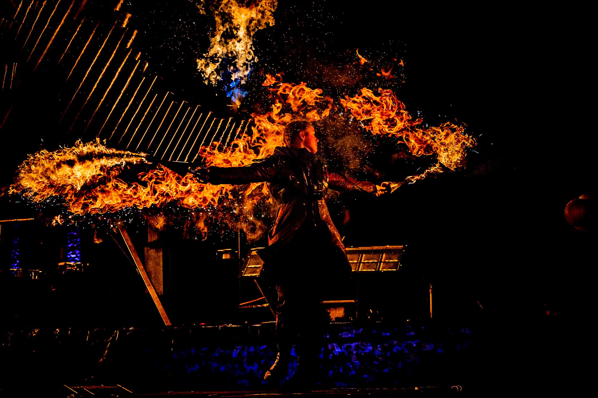 Notre intervention s’est inscrite en étroite collaboration avec les équipes artistiques et techniques (son, vidéo, effets), nécessitant une synchronisation précise et une grande adaptabilité en conditions live.