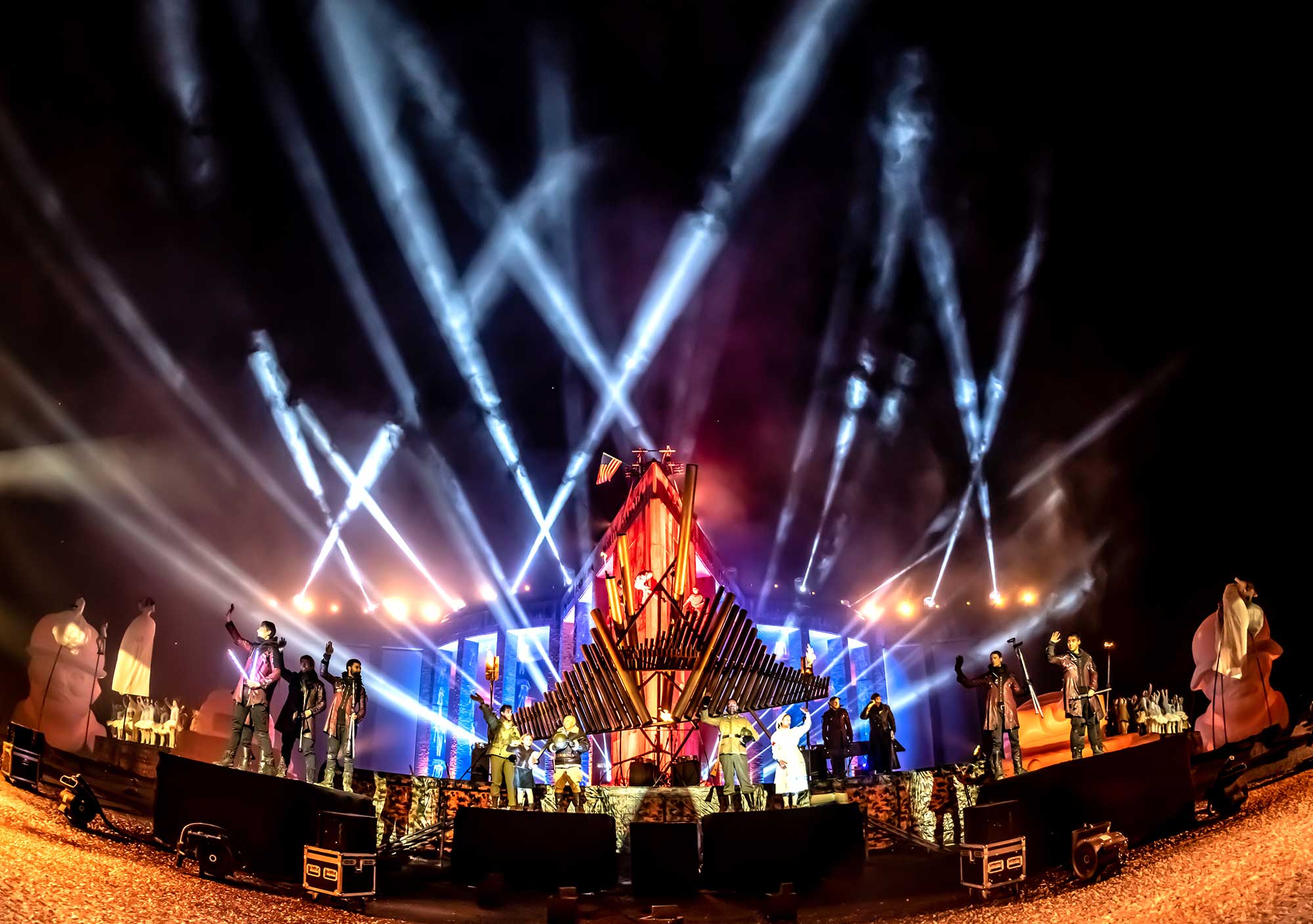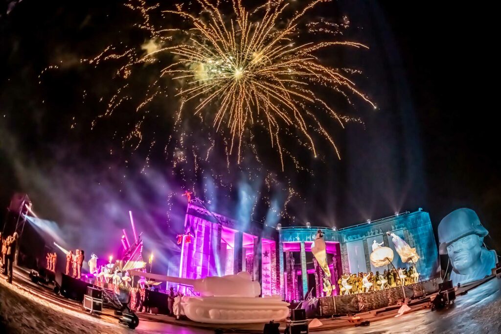 Déployés sur différents sites, ces événements mêlaient narration historique, performances artistiques et dispositifs scéniques à grande échelle, dans des environnements extérieurs à forte charge symbolique.