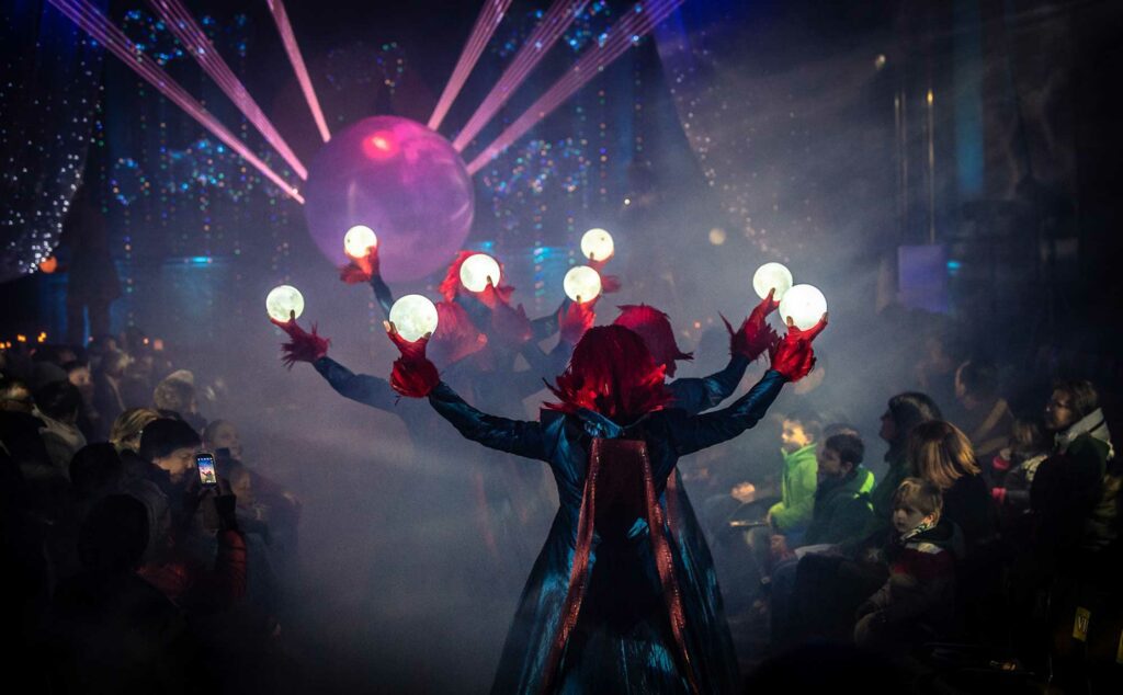 Déployé au sein de lieux patrimoniaux d’exception, le spectacle s’inscrit dans une approche immersive où la lumière dialogue avec l’architecture, révélant les volumes, les matières et les perspectives propres à chaque cathédrale.